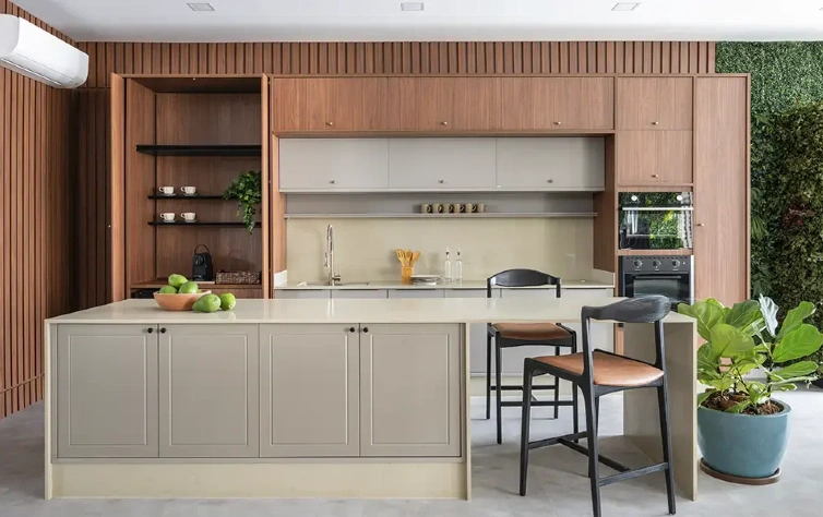 Esse mapeamento orienta o desenvolvimento desde o início e permite que cada decisão — do layout à organização interna — faça sentido no uso real do ambiente. Para ilustrar, uma cozinha pensada para uma família que cozinha diariamente e recebe visitas com frequência exige soluções diferentes de um espaço utilizado de forma mais pontual.